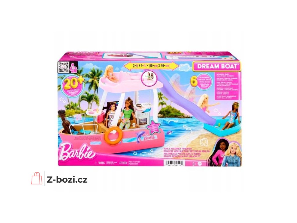Barbie Vysněná Loď – velký herní set s 6 zónami, bazénem, skluzavkou a více než 20 doplňky.