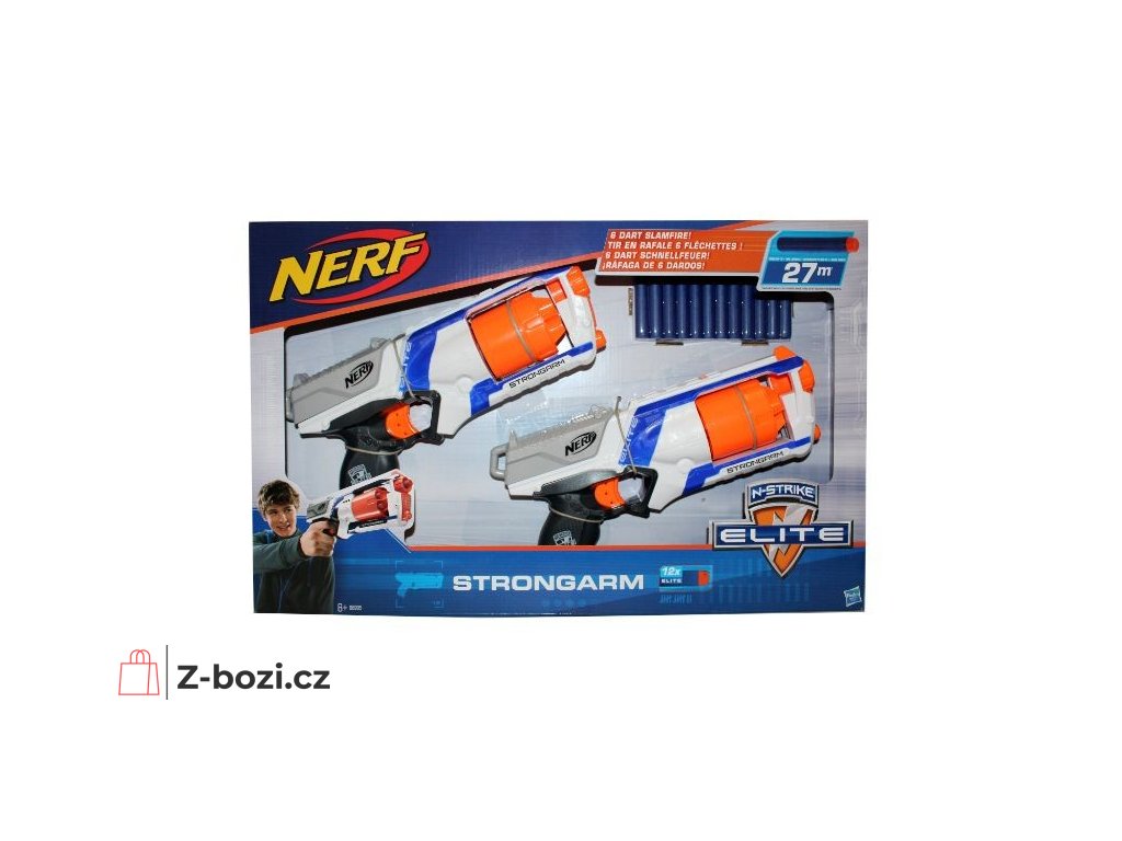 Strongarm je jedním z nejoblíbenějších odpalovacích zařízení Nerf, které se vyznačuje velmi dlouhým dosahem šipek