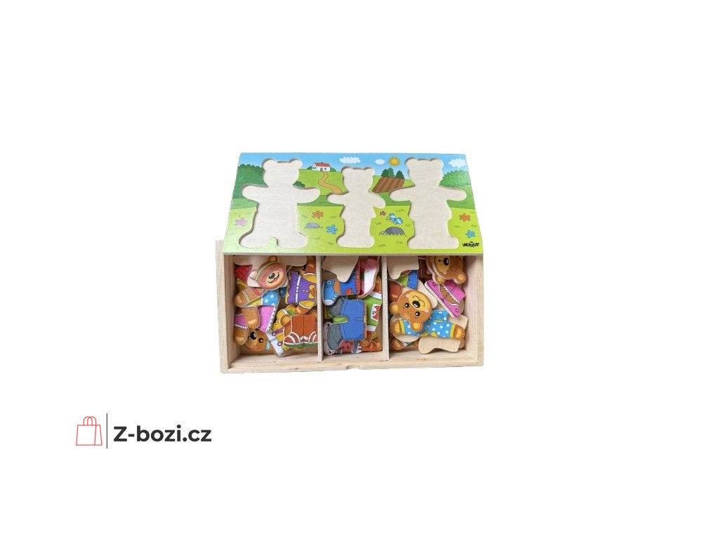 Krásná, dřevěná skládačka která umožní obléct si medvědí rodinu, dle vlastní fantazie.